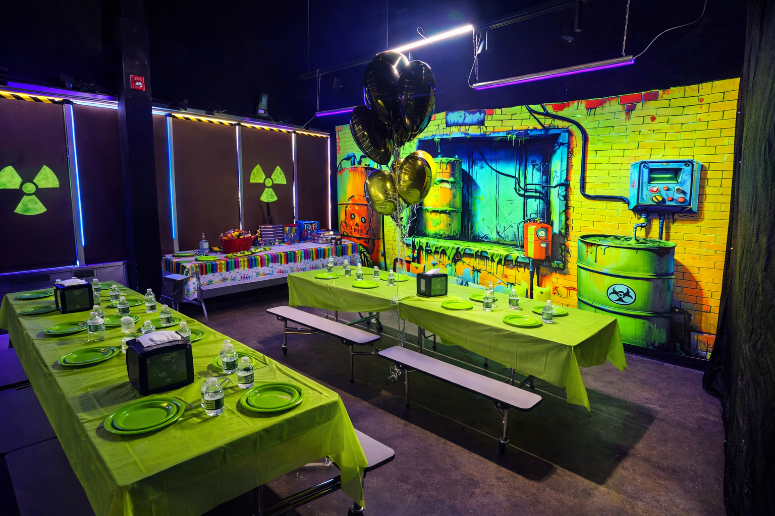 After 90 minutes of intense, team-based action, your group moves into the party space for pizza, cake, and celebration. We handle the setup and cleanup so you can sit back, relax, and enjoy the moment.