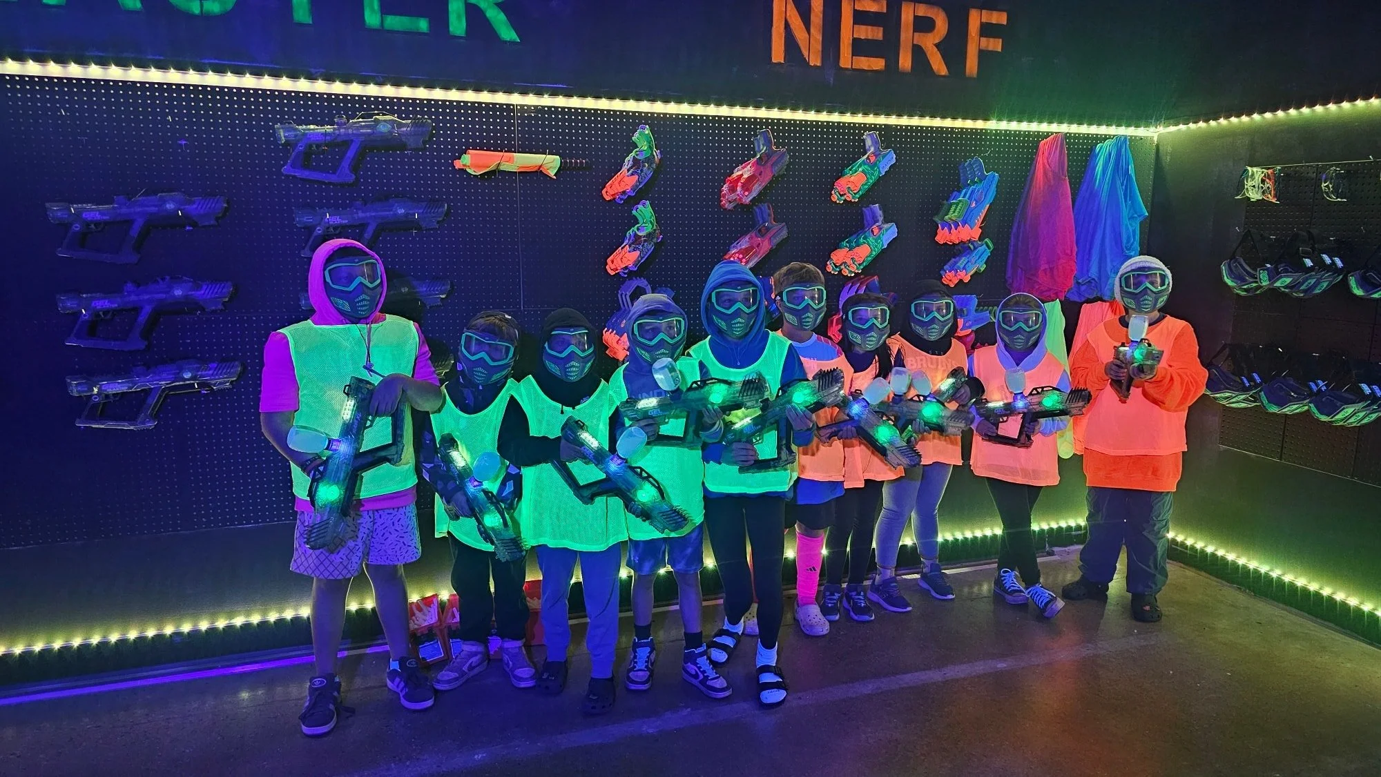 From the moment you arrive, our team takes care of everything. Your party kicks off in our private, blacklight-lit arena where players gear up with high-quality gel blasters, face shields, and unlimited gel ammo. A dedicated party host runs the entire event, leading fast-paced missions and making sure every player has a blast — literally.